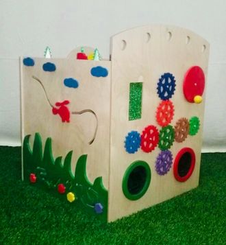 Кубик предназначен для развития тактильных ощущений, мелкой моторики,воображения и зрительной стимуляции. Изделиепредставляет собой куб с пятью многофункциональными гранями, с яркими,разноцветными элементами различных размеров и форм. Форма изделия позволяет увлечьодновременно нескольких детей.