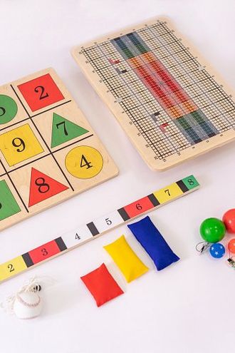 - 3 цветных мешочка с крупой;