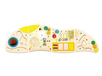 Комплектация: Лабиринт, Рифленая поверхность, Фигурки на веревочках, Молния для одежды, Шпилька с гайками, Часы, Шнуровка, Шестеренки, Фонарик, Металофон, Тактильный лабиринт, Зеркало