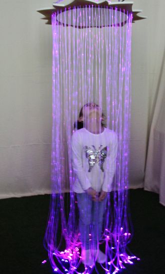 Фиброоптические волокна, закрепленные на закругленном основании образуют светящийся шатер, зайдя в который Вы ощутите приятное умиротворение. Дополнительный визуальный эффект создает закрепленное в основание зеркало. Глядя вверх, Вы увидите свое отражение в окружении фиброоптических волокон. Фиброоптический душ идеально использовать для релаксации в сочетании со спокойной музыкой или сказками для детей, так же это хороший способ провести беседу психолога с ребенком.