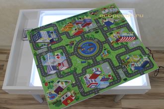 Игровая световая песочница-планшет 50х70см с отсеком, цветная LED подсветка, пульт